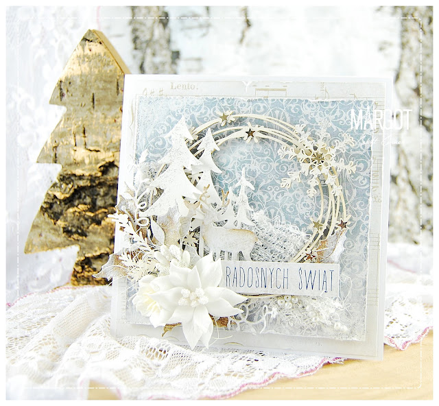 Margot here today with a lovely Christmas inspiration ... I decorated my card using beautiful chipboard elements, mulberry paper flower and poinsettia flower - made using white foamiran ... all available to buy from Wild Orchid Crafts shop.