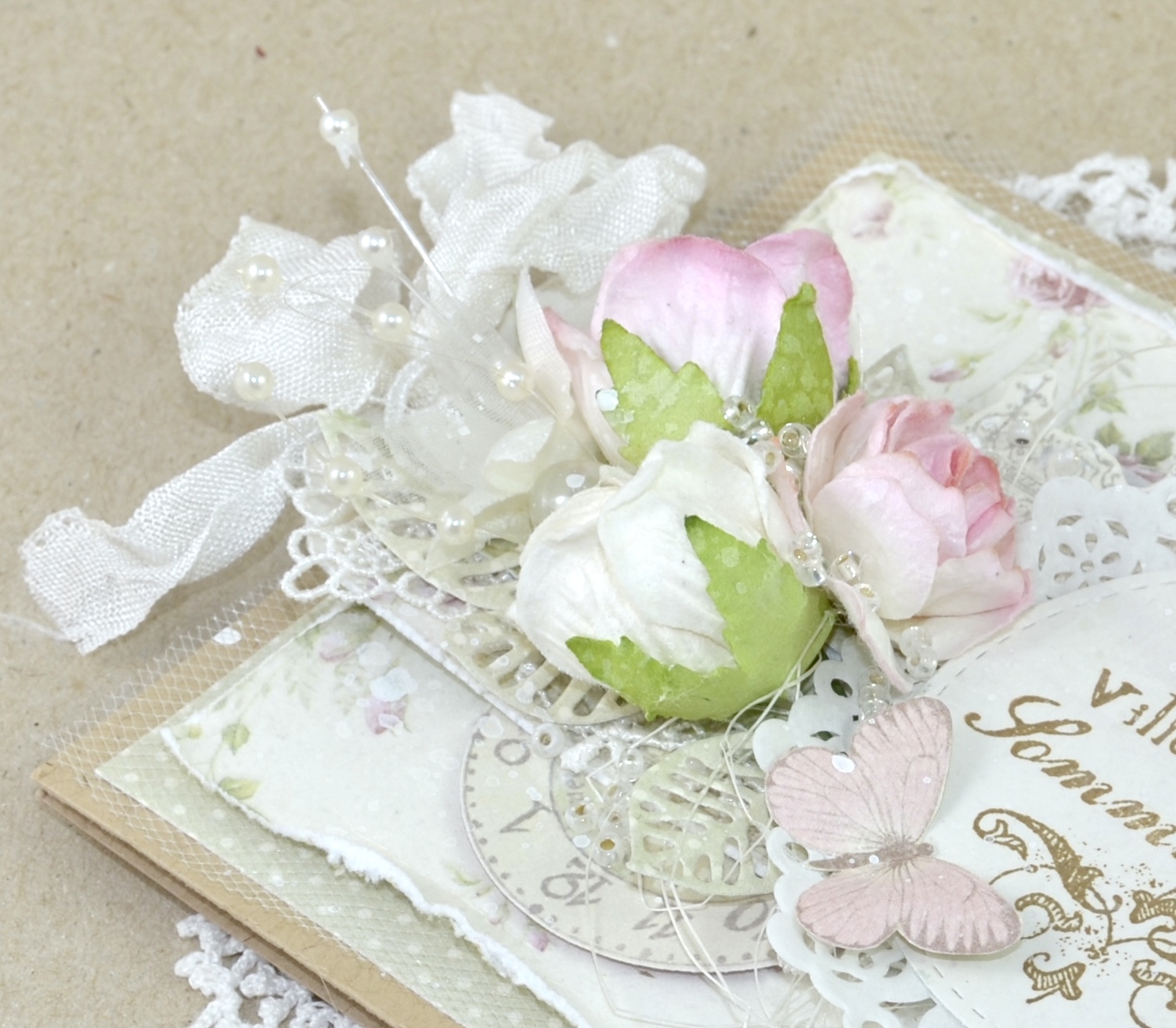 This is me, Cathrine here to show you my new blue Christmas Card using gorgeous small and large blue lilies and different fabric flowers. I have also received the small cute miniature sweetheart blossoms and totally fell in love with these cuties ❤︎
