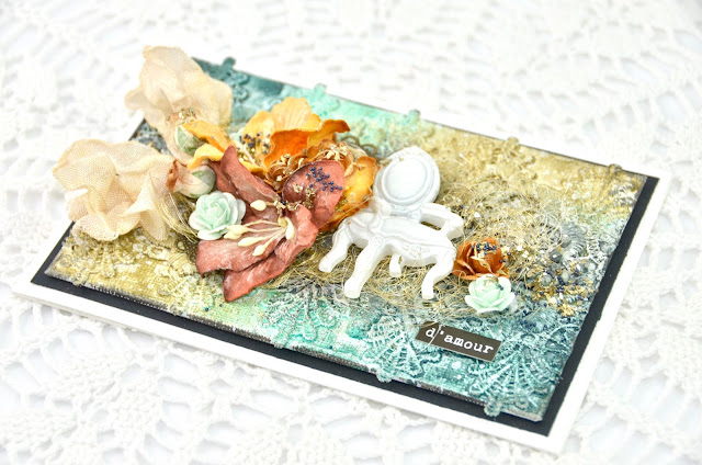 It's me, Cathrine here. I still feel the urge to continue Natasha's challenge for the summer; totally out of my comfort sone ;-) And, this project is far out! I have made a mini canvas. Wild Orchid Craft is for me flowers, flowers and more flowers, so I choose to keep them in focus. To go even further out of my comfort sone I decided to go with brown and turquoise colours.