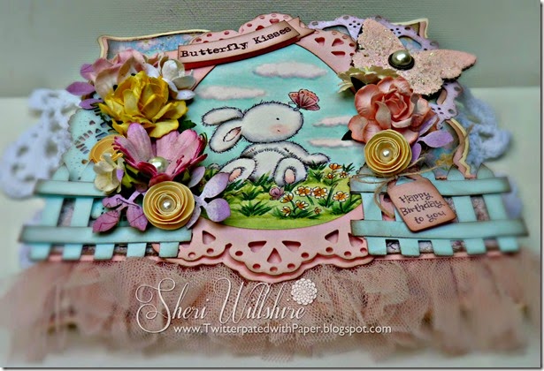 From Wild Orchid Crafts: Open Roses, Poppies, Vintage Seam Binding, Paper Doilies and Lace.