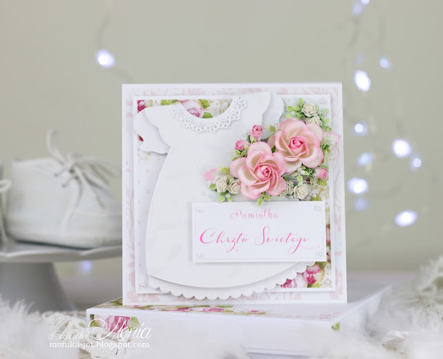The second card is all white and I used just white flowers: magnolias, cottage roses, sweetheart blossoms and open roses. I also added some white leaves.